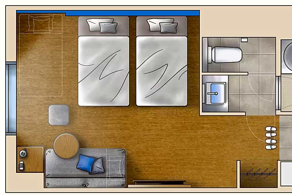 Featuring warm natural colors, spacious rooms are fitted with a foot massager, a flat-screen TV and an electric kettle. An ionic hairdryer and free toiletries are included in the private bathroom. 2 small double beds (47 in wide) are offered.